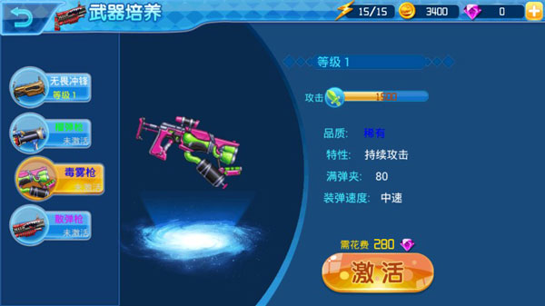 这里的武器系统也都非常的丰富,不同的武器,它们所拥有的射击速度,品质以及攻击方式也都大相径庭,但若想解锁其中的某款武器,需要消耗一定量的钻石哦。