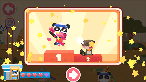 1、下载安装好宝宝巴士奇妙运动日,进入游戏选择一个动物进行比赛,左下角的爱心为游玩的次数。