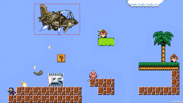 6、在这里马里奥玩法场景中,有坦克大战、合金弹头等元素,这时候就需要玩家的身法来躲避它们的子弹了。