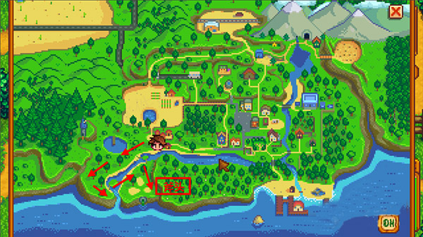 4、斧头其实是在玛尔妮农场的南边。下图已经标明位置了,箭头是行走方向。