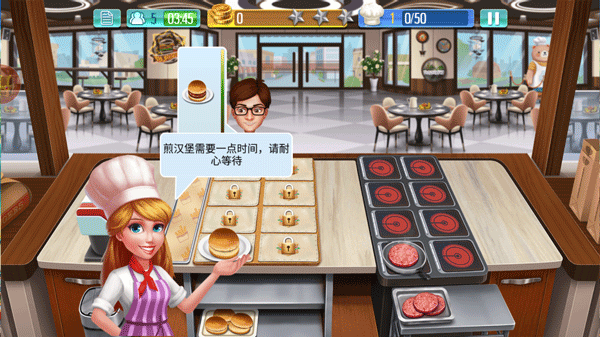 4、有顾客需要汉堡,玩家主要是制作顾客所需的汉堡;