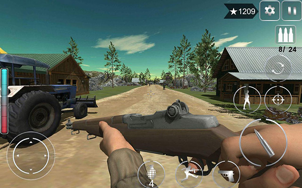 勇气召唤二战是一款以第二次世界大战为背景的第一人称射击游戏,英文名为"Call Of Courage"。玩家将扮演一名突击队队员,在多种模式中执行秘密任务。你需要迅速适应不同的作战模式,仔细观察地形并制定周密的战斗计划——任何一次错误的决定都可能让你付出生命的代价。【玩法指南】1. 进入游戏后,首先点击下方的“LANGUAGE”选项。2. 选择"汉语"以使界面显示中文。3. 点击"玩"按钮进入游戏主菜单。4. 根据个人喜好选择不同的模式(如"士兵与狗"模式)。5. 在选定模式中依次挑战关卡,每个关卡完成后难度将逐渐提升。6. 准备战斗时可选择合适的步枪和手枪进行配置。7. 利用地形中的掩体保护自己,用瞄准镜精准射击敌人。8. 在人多的情况下可以召唤训练有素的狼狗协助作战。【游戏特色】- 沉浸式3D战场体验:优秀的场景构建和氛围渲染技术,带来身临其境的战斗感受。- 独特玩法: * 狼狗协同作战系统 * 子弹时间特效 * 多种高科技武器装备 * 灵活的战术指挥系统(进攻与撤退命令)- 生存挑战:在写实风格的战场上,与时间赛跑,在野外环境中面对各种危机。【更新日志】v1.0.93版本:* 修复了目标光标消失的显示问题。* 增加了全新背景音乐和军官语音包。* 优化了游戏操作体验。