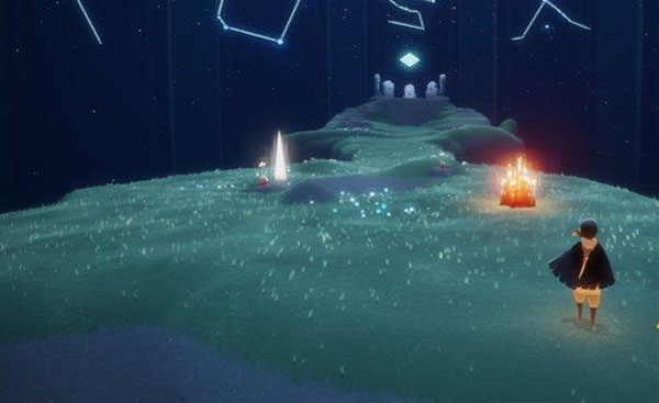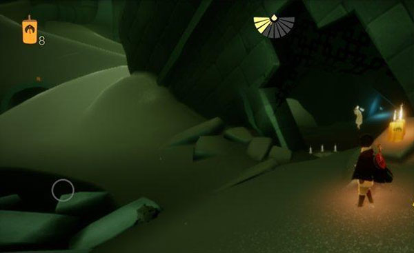 4、【拯救先祖,回溯历史】在探索王国的时候,旅人会在各个地点找到泛着蓝光的先祖灵魂。跟随灵魂的记忆碎片,旅人将了解更多关于先祖时代的历史和故事。用蜡烛点亮石像后,旅人会将先祖灵魂返送回天际。