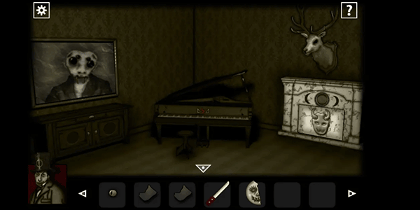 进入房间后将眼球放入鹿的眼窝里,拿走鹿角上的「钥匙」
