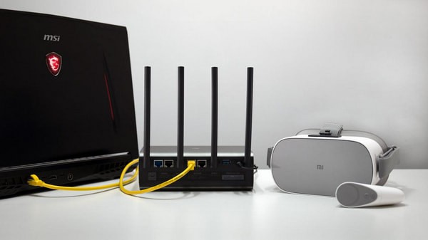 使用网线连接5G路由器、将PC电脑和小米VR一体机连接到同一网络。