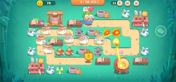 游戏玩法多样,玩家可以选择不同难度模式,并通过金币、钻石等奖励提升防御塔能力。最新版本加入了新角色“呆兔”,还有多种创新玩法和机关陷阱。新人玩家可以通过升级主炮台、合理摆放位置和搭配塔防来轻松通关。