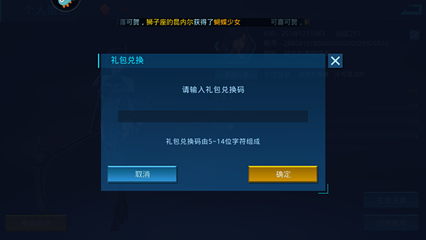兑换流畅:点击头像-点击礼包兑换-输入礼包码就好