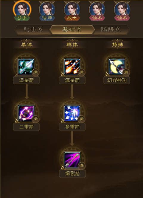 霸王箭:对单体敌人造成大量伤害,必定暴击。