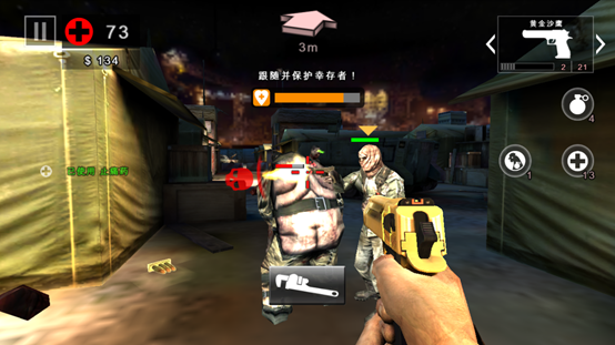 攻击模式的任务只有一个:清除区域内的所有僵尸。你可以使用任何方法杀死试图袭击你的僵尸,但要注意定时出没的小型BOSS。屏幕上方显示了当前需要消灭的僵尸数量,当这个数量为0时,任务就宣告成功。