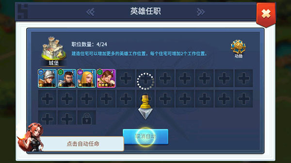 6、每个英雄在领地里都是一名劳动力,种田吃饭睡觉约会结婚生子,孩子长大了还会变成英雄,周而复始逐步壮大。记得多造餐厅,劳动后就会增加饥饿,胃里空了就不干活啦。