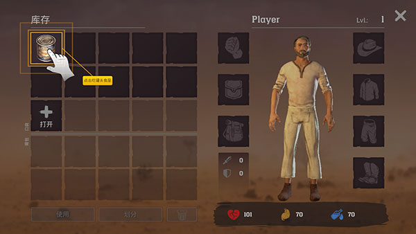 6、接着我们打开背包,吃掉刚刚找到的补给来恢复状态。
