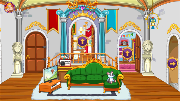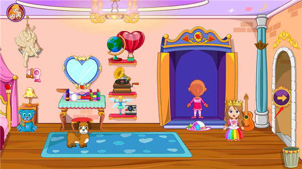城堡中共有12个房间,内置许多角色及大量服装、玩具、配饰及小道具,同时,每个房间还都可以高度互动,比如点击即亮的台灯、床头装饰魔法特效、会张嘴巴的玩具鱼等等,让玩家可以在里面尽情的玩耍。同时,游戏中为小公主和她的家人们穿的服装款式多样,数量众多,玩家可以自由的开启换装游戏体验。