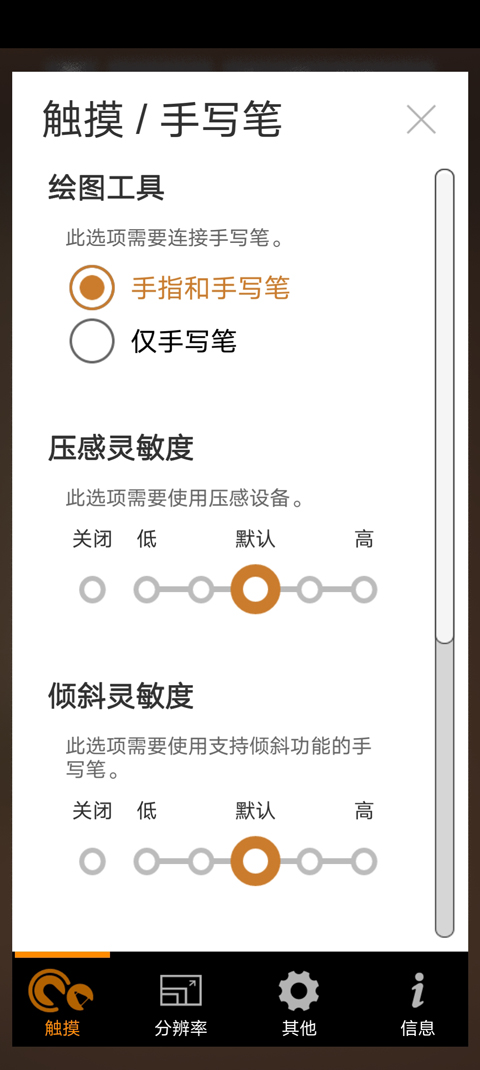 - 可调节画笔压力灵敏度(5个级别,仅支持手写笔)