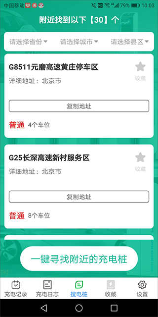 3、覆盖全国的充电桩,还提供充电收藏、充电记录、充电日志等功能。