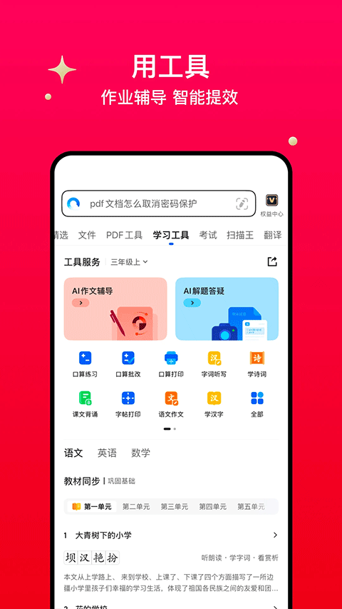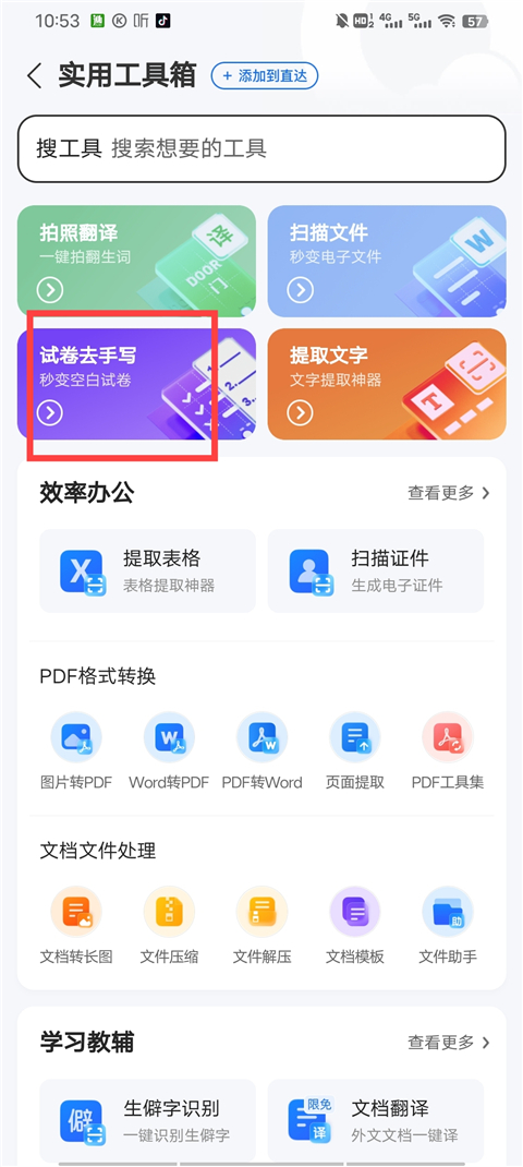 办公文档、文件管理、学习资料一站式快速处理;视频处理、格式转化、拍照扫描、文件解压缩等工具一应俱全