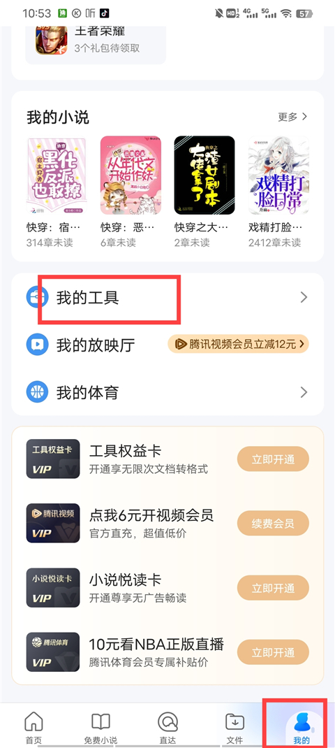 1、进入软件,点击我的,选择我的工具;