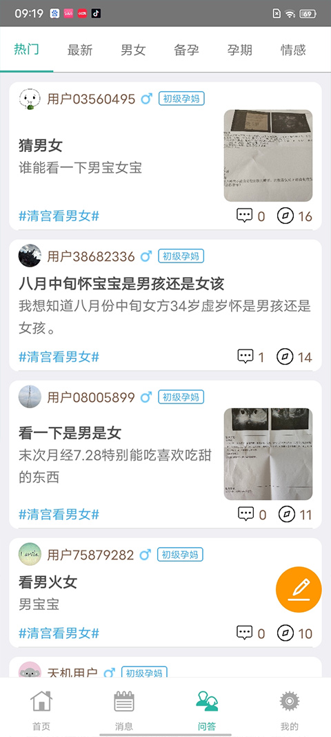 3、进入问答界面,这里有特别多同样是怀宝宝的妈妈们或者家里有宝宝家庭的问答,你也可以发出关于宝宝的疑问,总会有个缘人回答你的。