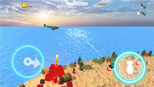 1、在敌方建筑物和车辆上投下炸弹,尝试进行精确点击以进入发烧模式!