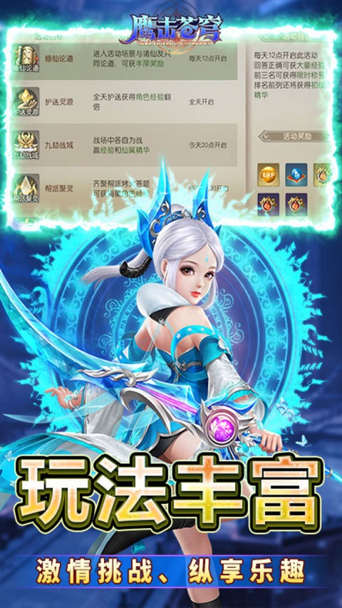 鹰击苍穹是一款好玩的玄幻修真MMORPG手游,画面精美,色彩和谐,场景设计充满创意。玩家可携手心爱的神宠并肩作战,乘坐霸气飞行坐骑,在修真世界中闯荡。丰富的时装系统让玩家自由搭配,彰显个性;激活经验精灵更能大幅提升经验值获取效率,助你快速升级。【版本优惠】鹰击苍穹0.1折版震撼来袭!全档位充值享真实0.1折优惠,用极少的花费获得丰富奖励,助力修仙快人一步!【游戏特色】1. 画面精美:采用先进3D引擎技术,打造极具视觉冲击力的游戏画面。2. 角色发展:通过完成任务、击败敌人和收集材料不断提升角色等级与能力,解锁更多技能和装备。3. 社交互动:加入公会,与其他玩家组队探险,共同应对挑战。4. 丰富的玩法: - 多人在线PVP对战 - 多种特色副本挑战 - 实时竞技场 - 隐藏宝藏探索 - 剧情任务触发【游戏亮点】- 每日活动丰富:副本挑战、限时任务等玩法每天都有新鲜感。- 灵活策略战斗:通过合理搭配技能形成多样化的战斗策略。- 公平对决:支持实时PVP对战,展现实力与智慧。鹰击苍穹手游为玩家打造了一个充满奇幻色彩的修真世界,助你快速成长,早日登顶修真巅峰!