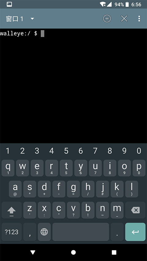 1、打开终端模拟器汉化版最新版本后的界面,在这里就可以方便的输入很多命令了。左上侧可以进行窗口的切换,点击右上的加号是新建窗口,错号是关闭当前窗口,三个点是更多选项。