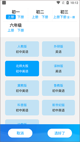 1、打开登录初中英语名师辅导app,点击首页上方,选择自己所在的年级和教材;