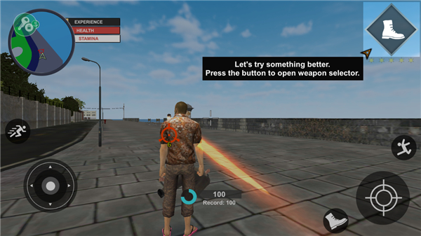 3. 受到枪击时,点击左上角的靴子进行操作。