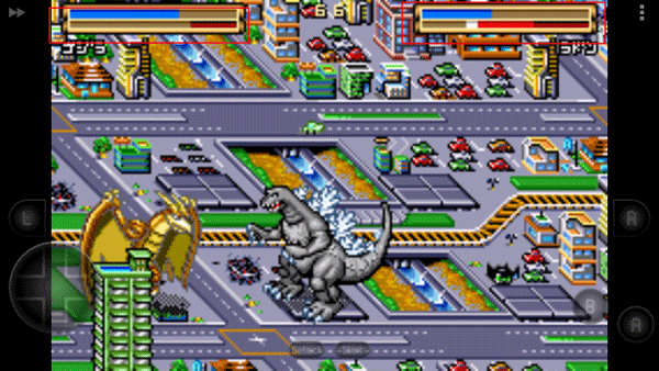 3、结束了对话和游戏背景之后,确认好哥斯拉的属性值,再次点击A键开始战斗,不同关卡中所进行战斗的怪兽都不相同,你需要根据实际情况来打败它们。
