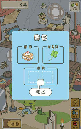 然后我们点击右下角的“小屋”返回房间里,在房间里点击左下角的“准备”按钮,开始为青蛙准备旅行的行李。