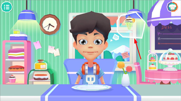 2、客人想要一杯冰淇淋饮料,开始动手制作吧,在展柜里选取客人想要的美食,点击制作;