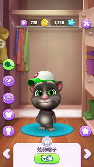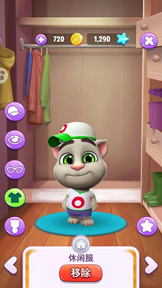 这款游戏太有意思了!它不仅能让玩家和汤姆猫互动聊天、唱歌跳舞,还能给汤姆猫换衣服打扮。进入卧室后点击衣柜,就能选择帽子、眼睛、衣服等等配件。虽然有些好看的款式需要花金币或星星购买,但试穿成功后还能记录搭配,方便下次直接使用。玩过之后觉得特别有趣,尤其是和朋友比拼穿搭的环节,赢了还能获得奖励,输了也没关系,挺有成就感的!