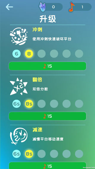 提升冲刺、翻倍、减速等技能等级,利用沿途收集的音符来加以升级,从而能够助力你更好的进行挑战。