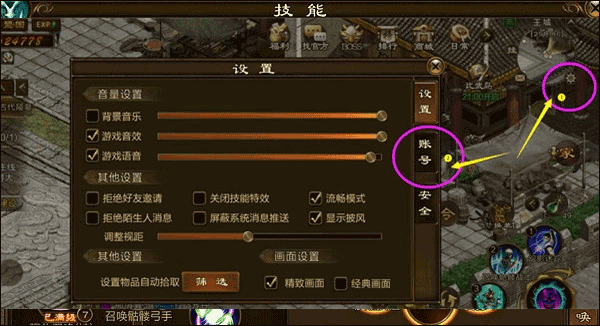 预约或者关注微信关注号获得的激活码礼包,可能有不少朋友不知道怎么激活的。我们可以点击右上角的齿轮按钮,打开设置界面。再选择“账号”栏输入激活码领取礼包。