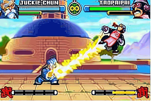 1、{↑ + B} 把敌人踢向半空比较好用的一种攻击——把敌人踢向半空后,跳起,然后按B键追加攻击——从一开始攻击算起到敌人落地后,最多大概能够连击14次 。{→ → + B} 疾步横踢 。