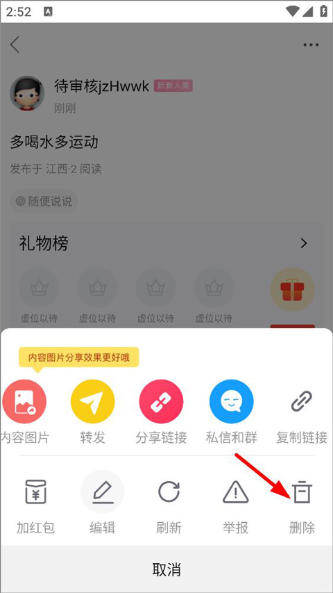 6、 个人可以删除自己发的帖子啦;