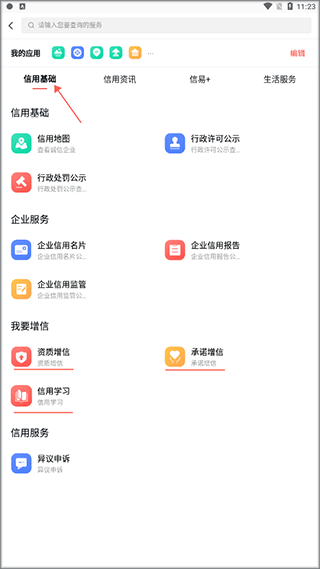 2、打开信用榆林app,点击首页-全部-信用基础版块里的“信用承诺、学习增信、资质证明、分享增信”等方式来提升桃花分。