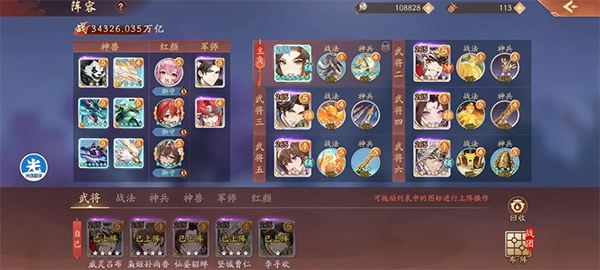治疗我方全体武将,对低于60%血的目标造成额外治疗,同时随机一名武将攻击力提升,维持两回合,在中后期换下治疗后,化身甄姬,可以弥补缺失治疗的问题,并且治疗量并不低,还额外加了我方一名武将的攻击力。