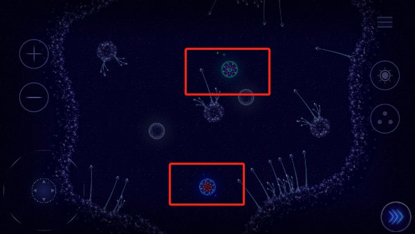 3、用手滑动圈中蓝色的细胞可产生抗体,然后点击你要攻击的目标即可吞噬对方。