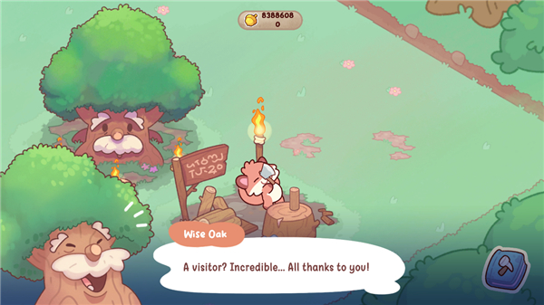 游戏的玩法非常直观,玩家只需要点击树就能开始收集橡子,然后用橡子购买各种建筑和装饰,解锁新的场景和动物。比如点击伐木场可以让小狐狸帮忙砍柴,完成任务后还能获得奖励。整个过程节奏很慢,适合喜欢放松的人。