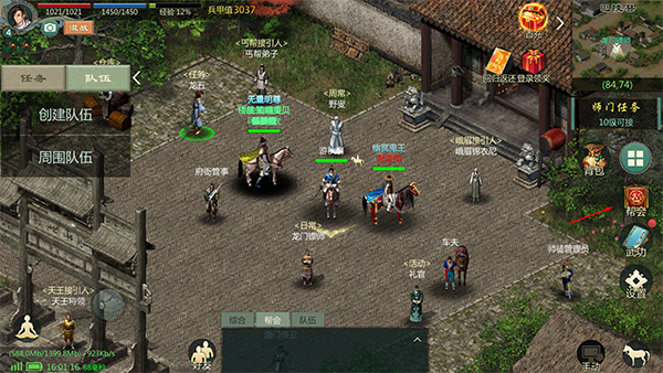 ②组队任务,活动内的组队任务。玩家可以通过组队,固定队为最佳,直接一条龙清掉,得到大量的经验,银两、玄晶、秘籍等道具