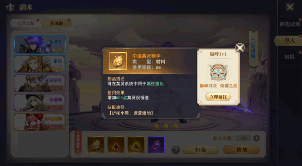 每次在英灵殿挑战成功,神选者大人都可以获得大量英灵培养材料、英灵碎片,挑战的战士等级越高,奖励也会越来越好,同时还可以进一步提高自己的等级呢!