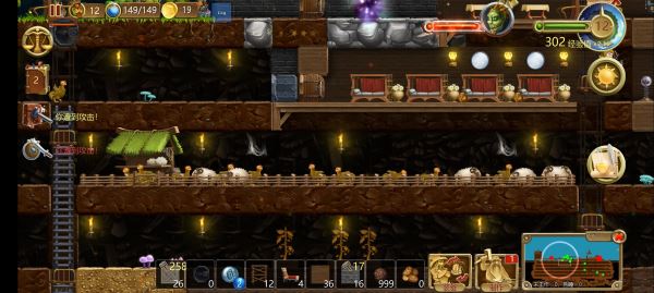 玩家需要安排矮人们的衣食住行,可以直接控制矮人进行挖掘、砍伐、攻击、建造等操作,并在矮人与怪物和BOSS战斗时使用魔法帮助他们。