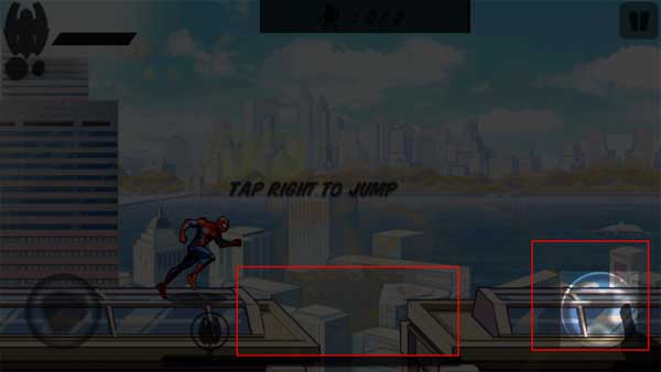 2、通过手指的上下左右的滑动进行控制你的蜘蛛侠冒险,小心的躲避那些障碍物向着更远的地方前进;