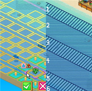 也就是海洋一共有6层,只是由于坡和坡在一起的时候中间的平面无法放置东西和其他一些原因,放置时一般看不到完整的5层网格。即使你把整个海域都填的不能再填,也至少有深度5