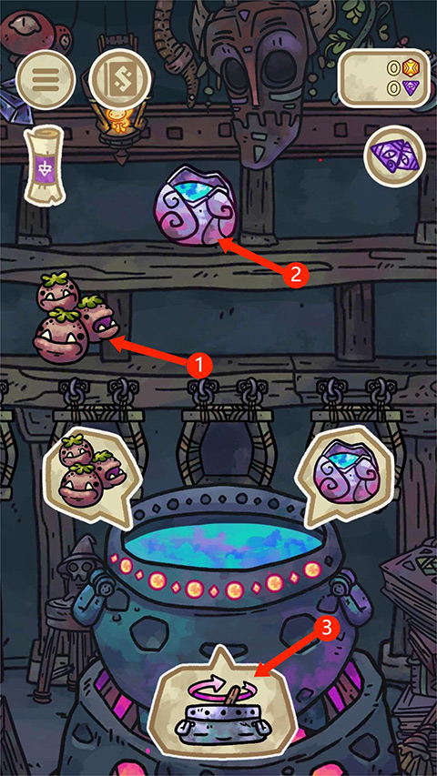 2、在搅拌时坩埚中会冒出泡泡, 点击它们有时会得到一些金币和宝石,