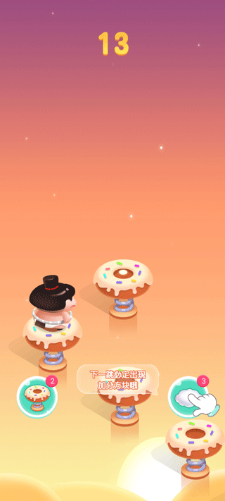 3、还有自动三连跳和下次必定出现加分更多的方块