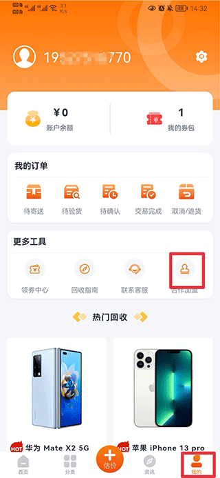 一、打开软件,点击我的,在更多工具栏中点击合作加盟。