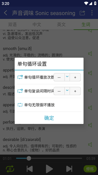 5、还有单句复读间隔时间以及设置无限循环播放