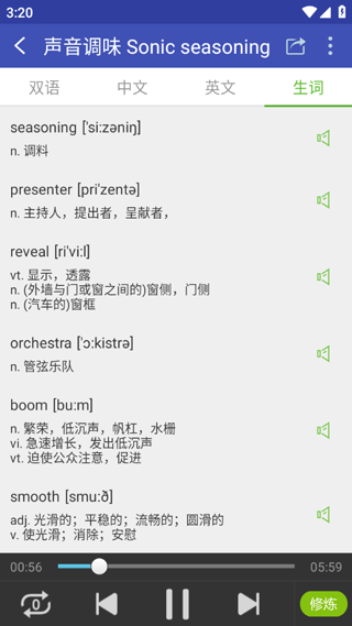 2、听力训练:语音同步双语字幕,单句循环,反复精听,轻松掌握所有知识点。