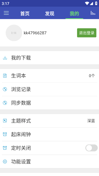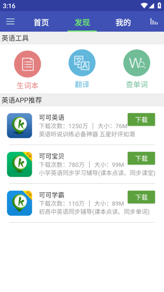2、在发现页,可以看到有生词本以及翻译、查单词等功能