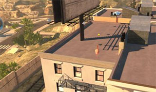 我们可以顺着楼梯爬到楼顶,记住电池放上去后是拿不下来的。楼顶有一个火箭筒和一个弹射装置。